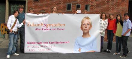 Der nächste Familienbrunch findet am kommenden Sonntag (29.11.2009) von 11 - 13 Uhr in der St. Thomas-Kirche, Wallensteinstr. 32, statt. Neben dem ausgiebigen Frühstück haben die Kinder die Gelegenheit zu spielen und zu toben. Das Angebot mit dem kostenlosen Brunch richtet sich vor allen Dingen an Familien, die sich kennenlernen sollen. Darüber hinaus sind auch andere eingeladen, die Spaß an Begegnungen haben. An dem Brunch nehmen monatlich rund 100 Leute teil. Er wird gefördert aus Mitteln der Kirche, die Familien stärken will. Er wird von rund zehn Ehrenamtlichen vorbereitet, unter anderem von Konfirmanden, die auf dem Foto zu sehen sind. Von 10.00-11.00 Uhr findet ein Familiengottesdienst rund um die Heilige Barbara statt mit Alfons, dem Schaf und der Jugendband. [Bernd Prigge]