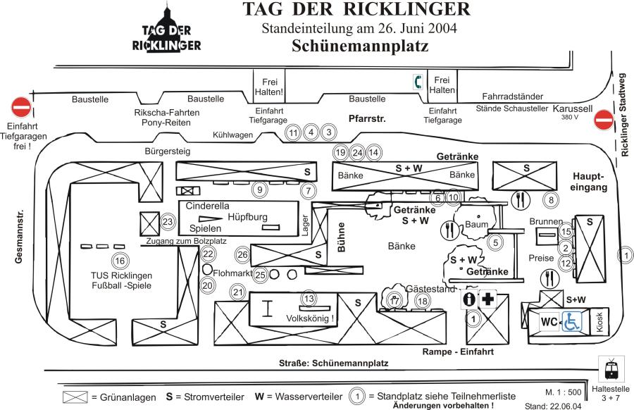 Der Tag der Ricklinger findet am 26. Juni 2004 nunmehr zum 10. Male statt. Die Organisation für dieses beliebte Stadtteilfest hat die Arbeitsgemeinschaft Ricklinger Vereine von 1957 e.V. übernommen. Karl-Heinz Böker, Vorsitzender der ARV: "Die Bürgerinitiative Schünemannplatz hat die ARV gebeten, die Trägerschaft für dieses Fest zu übernehmen, weil die Bürgerinitative ihren Zweck mit der Neugestaltung des Schünemannplatzes im Jahre 2003 als erfüllt ansieht. Wir vom Vorstand der ARV haben spontan und einstimmig die Übernahme der Trägerschaft beschlossen. Wir werden zunächst das Konzept der vergangenen Jahre übernehmen, sind aber für neue Ideen oder Anregungen aus unseren Mitgliedsvereinen dankbar."