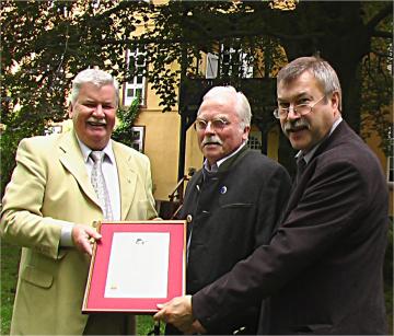 Überreichung der Urkunde und der Ehrennadel an Victor Jürgen v. der Osten durch Erich-Peter Potthoff und Klaus Dieter Scholz