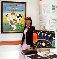 In der Laudatio gab Jürgen Mensching dann den Anwesenden einen Überblick über den Werdegang der Künstlerin Dorothée Hrassnigg, die erst vor 5 Jahren mit dem Malen begann. Während eines längeren Aufenthalts in Paris - ihr Mann arbeitete zu der Zeit dort - kopierte sie zunächst andere Maler, bevor sie eigene Werke schuf.