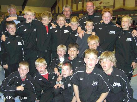 In der Vorrunde setzten sich Ricklingens Kicker gegen VV Hoogeveen (NL) mit 5:0, gegen Neumünster (D) mit 3:1, gegen Værløse Boldklub (DK) mit 3:0 und gegen Lillån FK (SW) mit 4:1 durch und zogen ins Halbfinale ein. Dort wartete mit E.B.O.H. (NL) ein starker Gegner, der aber auch mit 3:2 besiegt wurde. Im Finale ging es gegen „alte Bekannte“ aus Nds. Döhren. Die Döhrener Jungs waren im Finale höchst entschlossen und spielten guten Fußball. Sie führten bis sechs Minuten vor Spielende mit 2:0 und waren eigentlich schon durch – doch dann wachte Ricklingens MANNSCHAFT auf und bestach durch großen Kampfgeist und super Fußball. Durch Tore von Christian Nowack, Niclas Füllkrug und Felix Krüger war der Sieg perfekt und beim Abpfiff flossen reichlich Freudentränen. Ein weltklasse Turnier mit starken, aber vor allem harten Gegnern ging zu Ende und TuS Ricklingen und Nds. Döhren feierten zusammen die Turnierspitze und feuerten sich gegenseitig bei der Riesen-Siegerehrung an. Beide Mannschaften zeigten, wie stark der Fußball im Kreis Hannover-Stadt ist und das man mit spielerischen Mitteln viel weiter kommt als mit Treterei und Meckerei (Gruß an unsere Sportfreunde aus Holland u. Schweden).