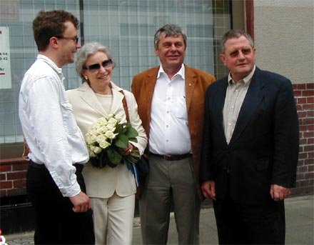 Im Anschluss wurde in Anwesenheit der Enkelin des Namensgebers Karl Schünemann, Sigrid von Berlepsch, das neue Legendenschild am Schünemannplatz von Bezirksbürgermeister Werner Bock feierlich enthüllt. Zuvor musste allerdings erst eine Leiter organisiert werden, wobei sich die Freiwillige Feuerwehr Ricklingen wieder als Rettung erwies.