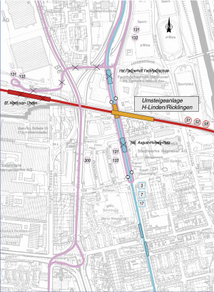 Die Stadtbahnhaltestelle Bahnhof Linden/Fischerhof