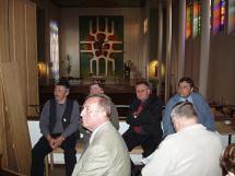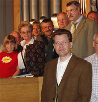 Zuvor begrüßte Pfarrer Pater Ulrich Heroven die Gäste in der farbenprächtigen St. Augustinuskirche. Unter den Klängen der berühmten Lobback-Orgel ging es auf die Empore, um hautnah dem Organisten Winfried Dahn beim Spielen auf die Hände zu sehen und vor allem die Füße beim Laufen über die Pedale zu verfolgen. Umso mehr das Staunen über die Faszination des Orgelspiels. Eine Kostprobe für die Welt-Uraufführung mit den Nationalhymnen der Fußball-Weltmeister gab der Künstlerische Leiter der Konzertreihe Musik in St. Augustinus mit einer Improvisation zu der weltbekannten englischen Nationalhymne. Viele wollen zum WM-Konzert am 6. Juni 2006 um 19.30 Uhr – drei Tage vor dem Anstoß der Fußballweltmeisterschaft - in die St. Augustinuskirche wiederkommen.