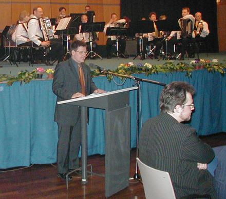 Danach sprach Bernd Meier und begrüßte ebenfalls in seiner neuen Funktion als Vorsitzender der ARV alle Anwesenden. Er betonte in seiner Begrüßungsrede die Wichtigkeit dieses Anlasses und versprach, dass die ersten 50 Jahre dem neuen ARV-Vortstand ein Ansporn sein sollen, sich für die Mitgliedsvereine und für den Bau einer Spiel-und Sporthalle in Ricklingen einzusetzten.