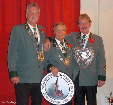 Der Vereinssportleiter Harald Janssen überreichte dem Michaelismeister 2008 Alfred Hagemann, dem Gewinner der Ehrenscheibe Eckhard Krupa sowie Rainer Küster, Sieger auf der Auflage- und der Freihandscheibe, ihre Scheiben und Urkunden.