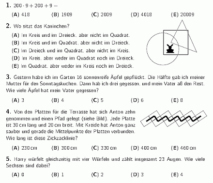 Zum dritten Mal beteiligte sich die Wilhelm-Busch-Schule an diesem Mathematikwettbewerb, der am 19. März 2009 nicht nur in Deutschland, sondern international (z. B. in Frankreich, Rumänien, Russland, USA, Mexiko...) durchgeführt wurde. Die 15 Schüler der WBS hatten sich im 1. Schulhalbjahr in der „AG Mathe fit“ intensiv vorbereitet. Da rauchten schon manchmal die Köpfe, denn die Aufgabenstellungen unterschieden sich ein wenig von denen in Schulbüchern. Aber Mathematik steckt in mehr Fragestellungen als oft vermutet wird. Mathematische Methoden finden in unterschiedlichen Bereichen Anwendung. Logisches Denken, Strukturieren, Kombinieren, geometrisches Vorstellungsvermögen, Schätzen, Trendvoraussagen – all dies wird besonders im Mathematikunterricht gelernt und geübt und spielt im täglichen Leben, wohin man auch schaut, eine Rolle.