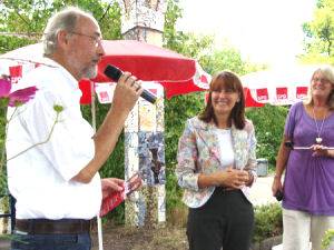 Das liebevoll mit Tischen, Stühlen, Schirmen und Feldblumensträußen hergerichtete Gelände füllte sich mit etwa 60 Bürgerinnen und Bürgern aus allen Altersgruppen, die das Angebot, ihre Fragen direkt an Edelgard Bulmahn stellen und diskutieren zu können, gerne angenommen haben. Es entwickelte sich eine lebhafte und teilweise sehr gründliche und weitgehende Diskussion. Doch gefragt wurde wider Erwarten gar nicht so viel zu den genannten kritischen sozialpolitischen Themen, eher schon in der Hinsicht, was sich denn in Zukunft ändern wird, unter dem Deutschlandplan von Frank Walter Steinmeier, und ob die Agenda 2010 denn verlängert werde.