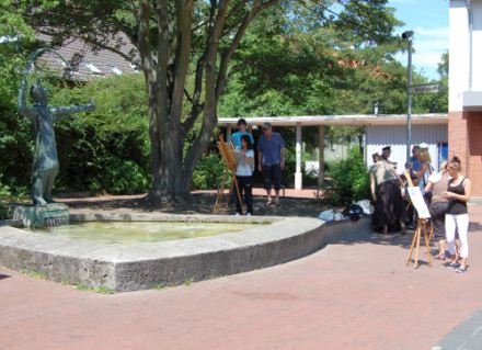 Klar, dass das einhellige Motiv der Brunnen mit seiner namensgebenden Figur wurde! Es war interessant zu sehen, wie unterschiedlich der Brunnen von den jungen Künstlern wahrgenommen und umgesetzt wurde.