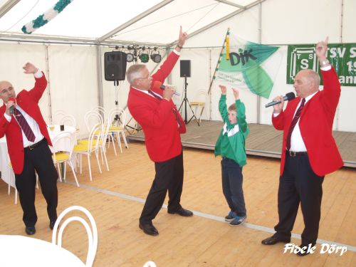 Zum Abschluss des Sonntagnachmittags gab es dann Ausschnitte der TSV Saxonia Play-Back-Show zu sehen. Standen die Besucher schon bei den Beeke Sängern fast auf den Stühlen, brachten die Play-Back-Stars Boney M., Beth Ditto und Lady Gaga das Festzelt endgültig zum Brodeln.