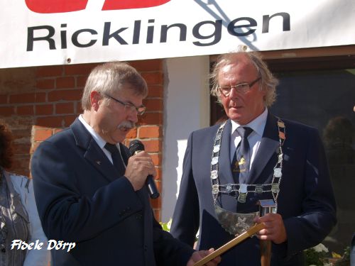 Hartmut Herbst hielt eine kurze Dankesrede, in der er erzählte, dass Klaus Dieter Scholz ihm bei der letzten ARV-Jahreshauptversammlung mitgeteilt hatte, dass er der 17. Ricklinger Deichgraf werden sollte.