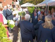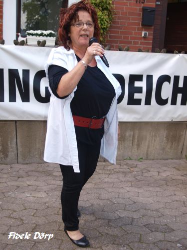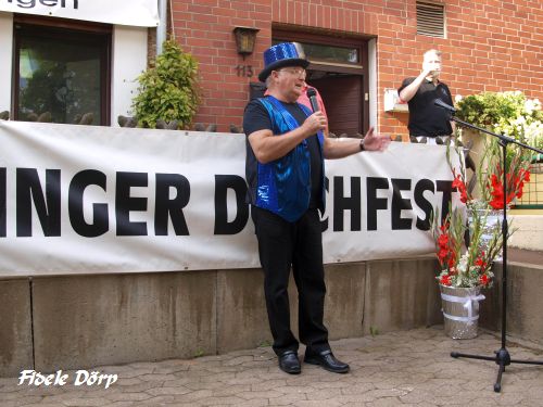 Hartmut Herbst: „Ich habe mir erst Bedenkzeit erbeten und eine Nacht darüber geschlafen. Zum einem dachte ich, erst mal bist Du kein Typ, der gerne im Mittelpunkt steht, und zum andern, Du hast sowieso so wenig Zeit und jetzt noch Deichgraf. Ich habe dann auf die Internetseite des Deichgrafen-Collegiums geguckt und festgestellt, dass es – man sagt neudeutsch – ein Netzwerk kreativer, engagierter Mitbürger, Mitbürgerinnen ist, die in Ricklingen was bewegen. Und dazu zugehören, dachte ich, kann nicht verkehrt sein und ist sicherlich auch fruchtbar für meinen Job. Ich habe also freudig zugesagt und stehe hier in Amt und Würden und gehe noch nicht am Stock (lacht und zeigt den Deichgrafenstab – Zwischenruf: „Das kommt noch!“). Ich möchte mich ganz herzlich bei der Jury bedanken, die mich gewählt hat und bei denjenigen, die mich vorgeschlagen haben, und wünsche uns allen ein schönes Deichfest. Dankeschön!“