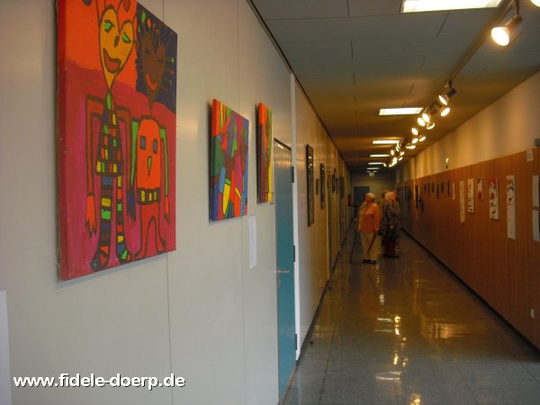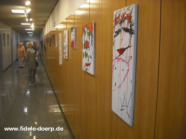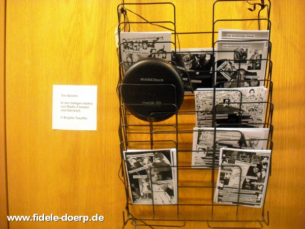 Brigitte Toepffer ist auf vielfältige Weise kreativ. Zu sehen sind in ihrer mittlerweile dritten Ausstellung Gedichte, Collagen, Malerei und zu hören sind Tonstücke, die sie für ihre Zeit beim nichtkommerziellen Nürnberger „Radio Z“ angefertigt und gesendet hatte. Frau Toepffer fühlt sich dem Dadaismus verbunden und gehört nach eigenen Angaben der Post-Punk-Wave & DIY-Szene an. Dies lässt sich besonders an ihren frühen Collagen sehen. Eine dieser Collagen zeigt das Gesicht der Künstlerin in vielen unterschiedlichen Lebensaltern – ein Teil davon ist auch auf dem Ausstellungsplakat zu sehen.
