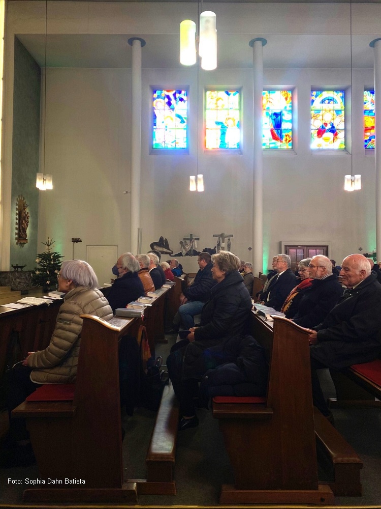 Dieses Ereignis wurde am 2. Weihnachtstag (26.12.2023) in der recht gut gefüllten St. Augustinus-Kirche in einem von Pastor Hermann geleiteten festlichen Gottesdienst gefeiert. Die Gottesdienst-Gemeinde sang die liturgischen Gesänge und die Weihnachtslieder kräftig und fröhlich mit, auch die evangelischen Christinnen und Christen; haben wir doch ein gemeinsames liturgisches Liedgut.