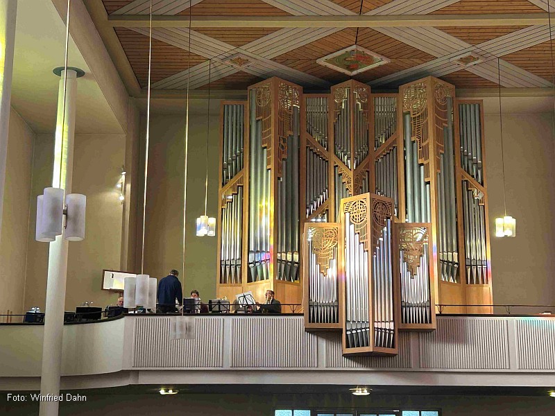 Gemeinsam mit dem Posaunenchor St. Thomas unter der Leitung von Johannes Opp und Winfried Dahn an der Lobback-Orgel war der Weihnachtsgottesdienst geprägt von der Freude am gemeinsamen Lob Gottes, vom Geist ökumenischer Verbundenheit und von der Kraft der Musik. Die festliche weihnachtliche Liturgie gestaltete Pastor Roland Herrmann.